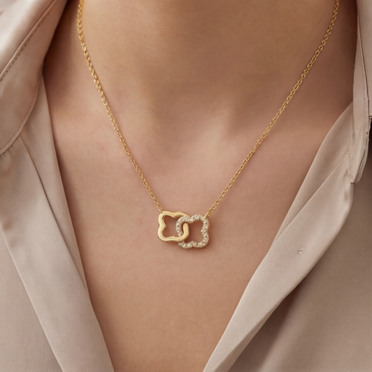 GOLDEN HEART & OVAL CHARM NECKLACE